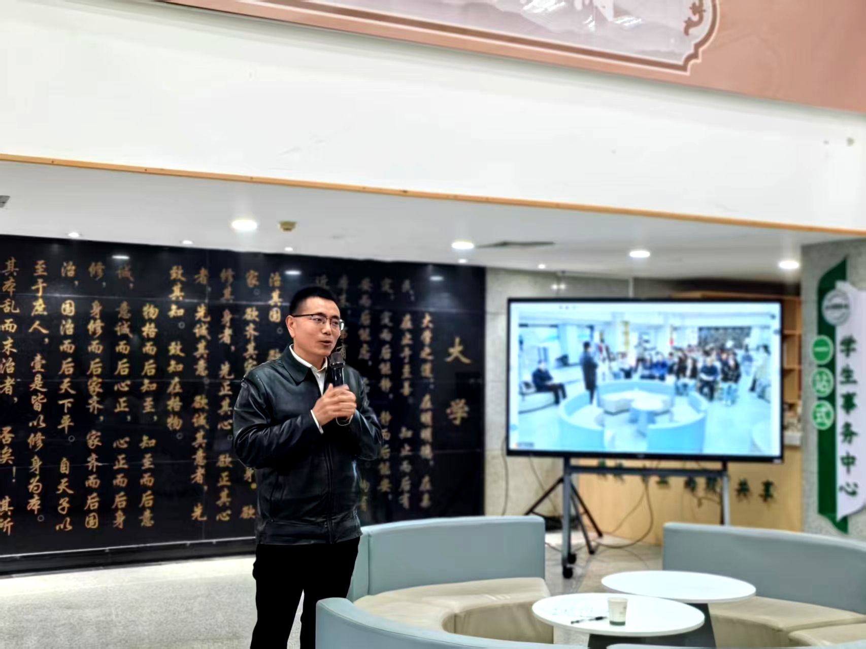 在“践行经典”环节,王悦洲通过“一钱太守”刘宠、“开仓济民”的郑板桥等历史人物事迹,展现了古人在廉洁修身、勤政为民方面的实践智慧。他还结合中国共产党在延安时期的廉政建设、党的七届二中全会的“六条规定”以及新时代廉洁文化建设要求,指出中国共产党始终是中华优秀传统文化的忠实传承者和弘扬者,红色廉政文化为新时代推进全面从严治党提供了丰厚精神滋养。他强调,大学生践行廉洁文化要紧扣“明志、立德、勤学、守纪、担责”五个维度,并介绍了学校通过“思想引廉、活动固廉、教育强廉、文化润廉、行动践廉”的“五个一”行动,推动廉洁教育走深走实的具体实践。