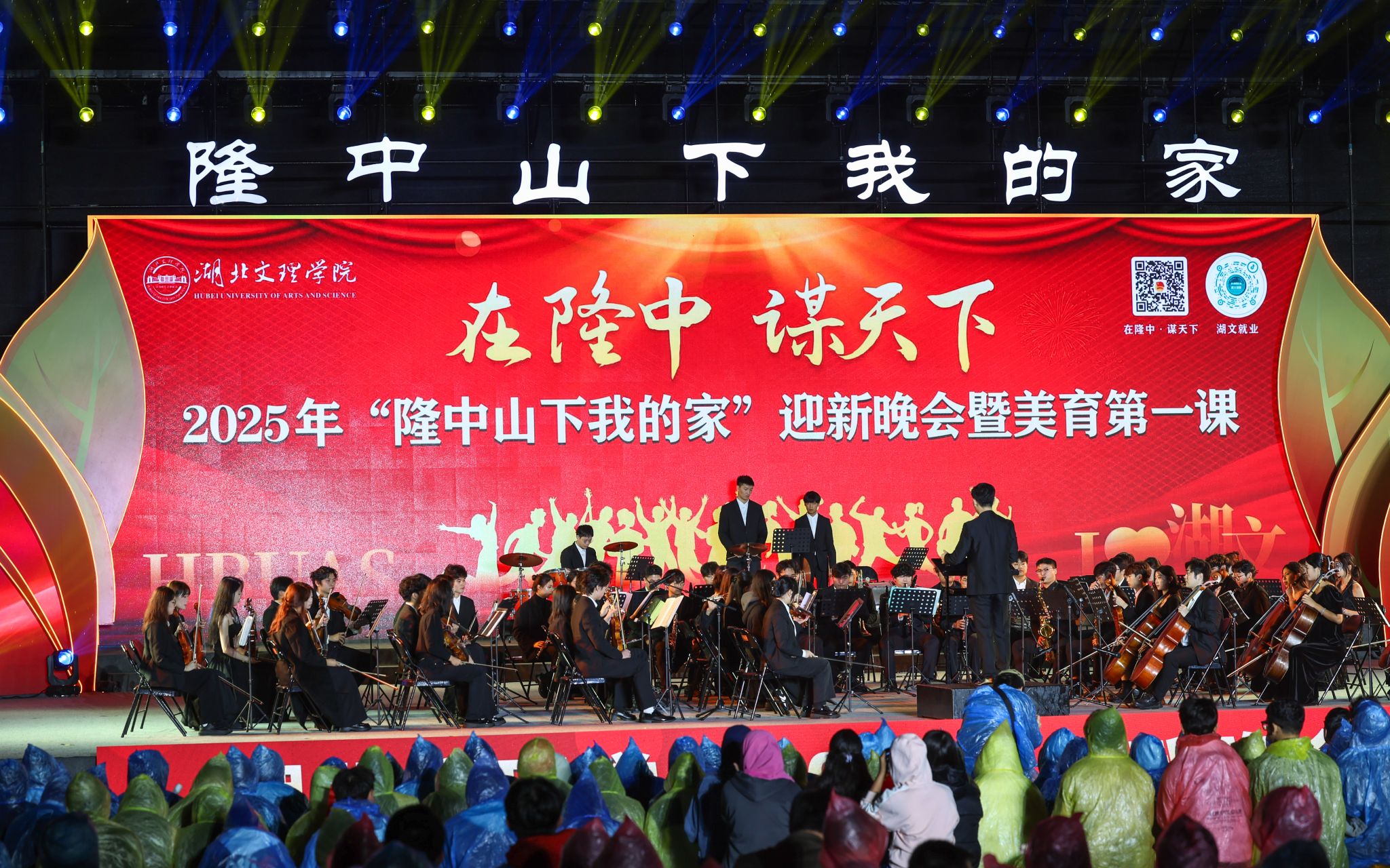 这堂生动的“大思政课”,以“隆中山下我的家”暨美育第一课为主题,分为上半篇“共聚·共筑”和下半篇“烽火·星火”两大篇章,涵盖交响乐、民俗表演、舞蹈、武术、相声、情景朗诵、小品、民乐、舞台剧、合唱等多种表演形式,融合襄阳地域特色介绍、中华优秀传统文化展示、红色精神传承、青春励志表达及爱国情怀抒发,为学生们精彩呈现“隆中山下我的家”,上好“美育第一课”。