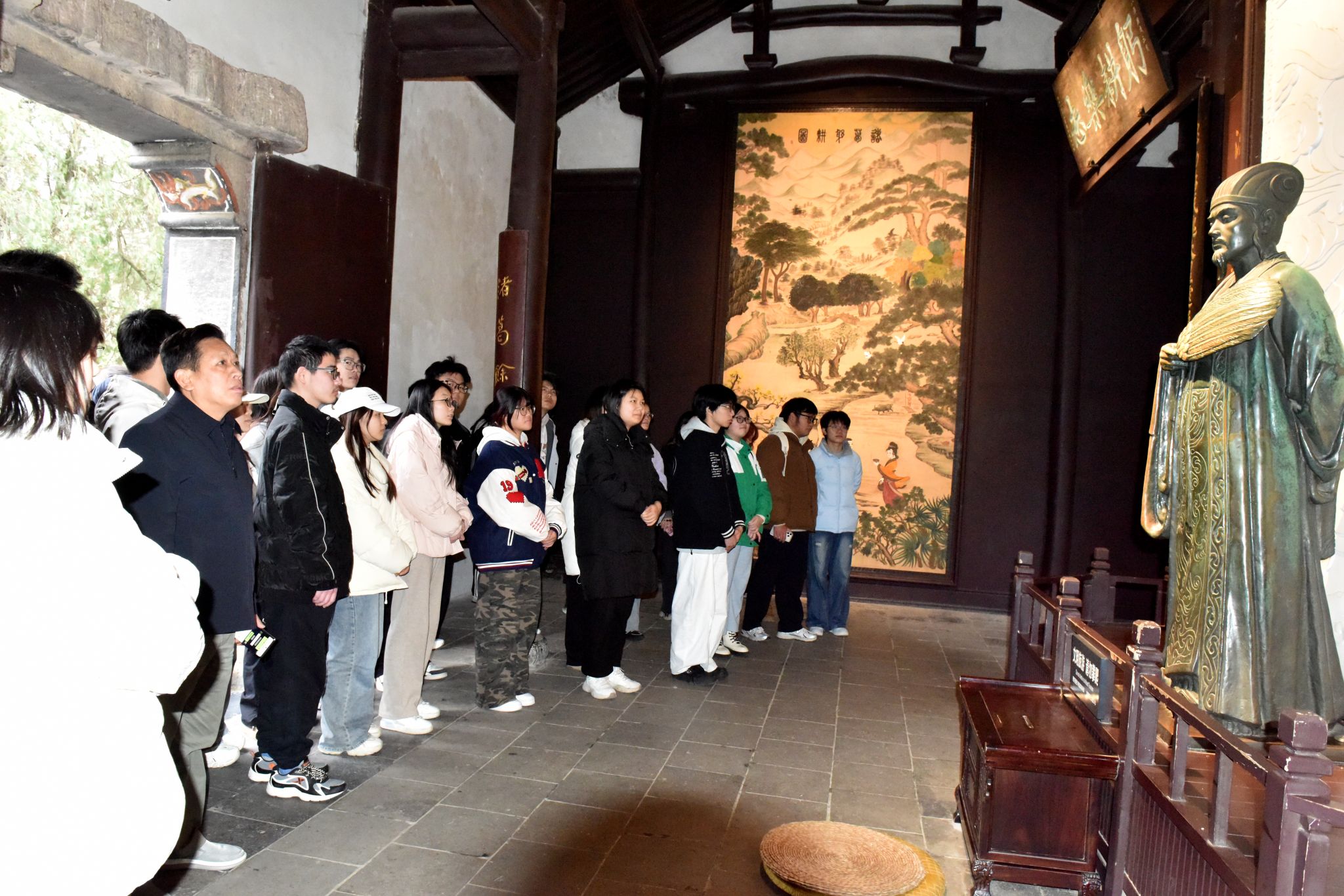 在“明良千古”主题展览中,师生通过丰富的文物与展陈,了解诸葛亮从隐居耕读到鞠躬尽瘁的生平,感受“明君良臣”的忠义佳话;在武侯祠内驻足瞻仰,缅怀其“鞠躬尽瘁、死而后已”的赤诚初心;在三顾堂前,重温“三顾茅庐”典故,领会诸葛亮的天下视野与谋略担当,切身感受隆中深厚的人文积淀与耕读传家的文化精神。